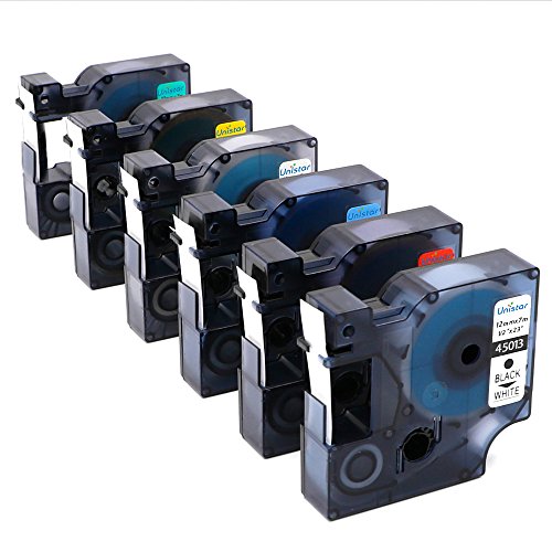 Unistar 6 Pack Combo Set D1 45010 45013 45016 45017 45018 45019 Label Tape for Dymo LabelManager, LabelPoint and 3M Printer