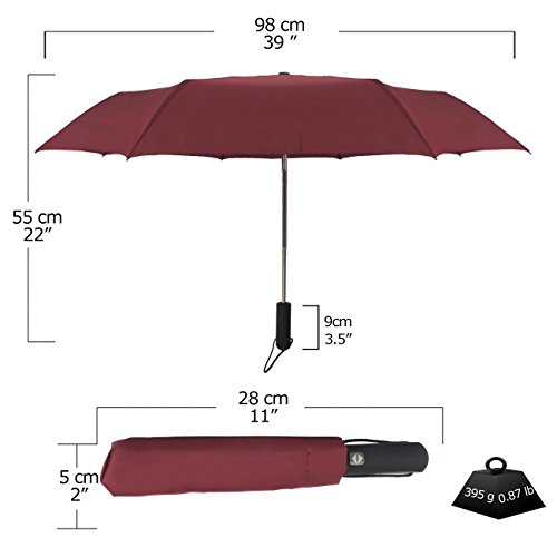 -. Feature : SIZE OF CLOSE : Height - 2.4" (6cm) ; Length - 11" (28cm) / SIZE OF OPEN : Height - 21.65" (55cm) ; Width - 38.58" (98cm) / MATERIAL : Cloth-100% polyester (Pongee); Shaft - 100%Aluminum / OPEN WAY : One hand Auto open and close / Brand : SUSINO