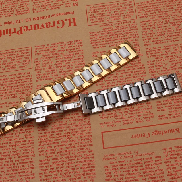 | [해외] 혼합 색상 시계 밴드 새로운 세라믹 스테인레스 스틸 손목 시계 스트랩 팔찌 다이아몬드 손목 시계 나비 버클 |
