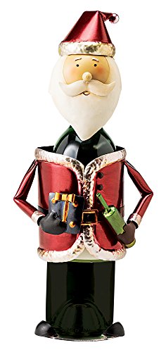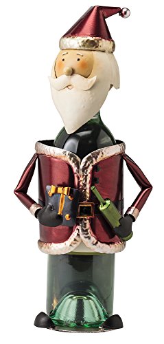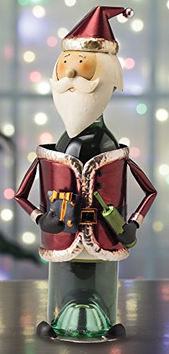 Santa Claus Wine Bottle Holder: Handmade, Hand Painted Metal Decoration Tabletop Wine Display for Holiday, Housewarming, Hostess Gift, Christmas Decorating