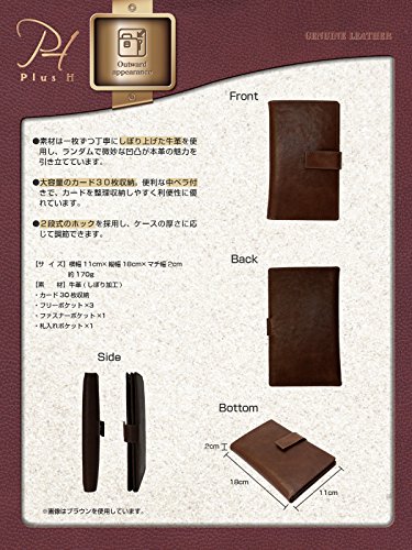-. Feature : ■サイズ:横幅11cm×縦幅18cm×マチ幅2cm 約170g / ■素材:外側内側:★植物性タンニンなめし革(しぼり加工:使い込んでいくことで革に味が出て革の良さを味わうことができます) ■カード30枚収納 ■フリーポケット×3 ■ファスナーポケット×1 ■札入れポケット×1 ◇手ざわり:柔○○●○○硬(※表記は目安です) / 素材は一枚ずつ丁寧にしぼり上げた牛革を使用し、ランダムで微妙な凹凸が本革の魅力を引き立てています。 / 大容量のカード30枚収納。便利な中ベラ付きで、カードを整理収納しやすく利便性に優れています。 / ※モニターにより色合い等が若干異なる場合もございます。 ※天然皮革は、自然が造り出した繊維のために、シワ、シボ(凹凸)、スジ、細かな傷等が付いている場合がございますのでご了承くださいませ。 ※登録商標「Plus H」(第5761017号)