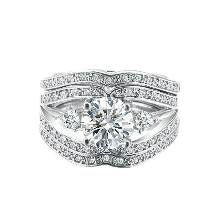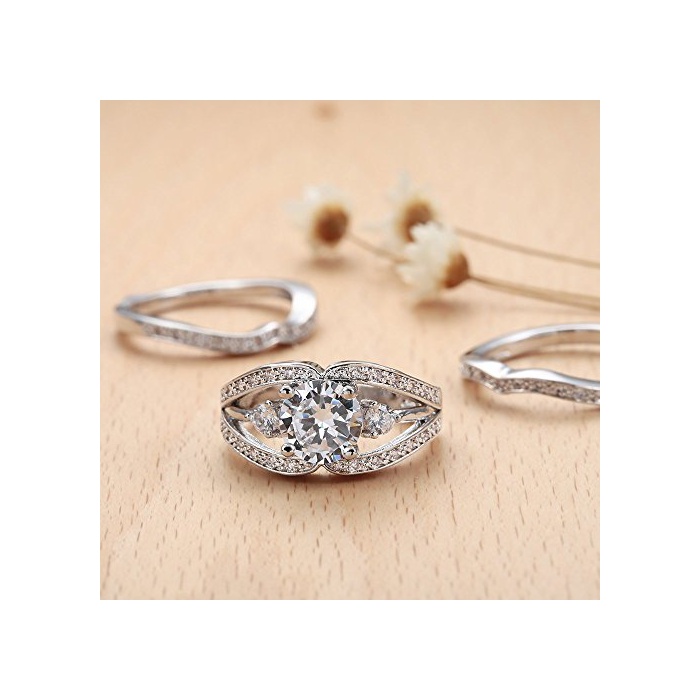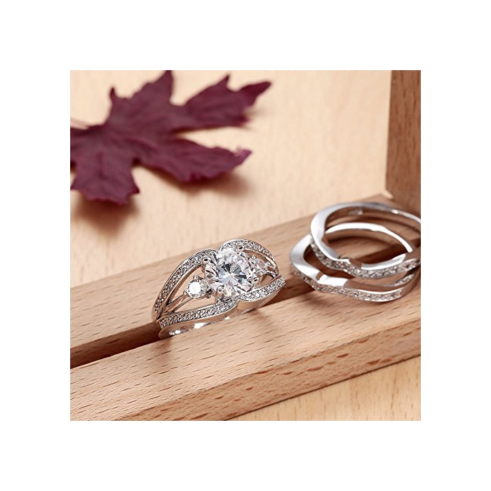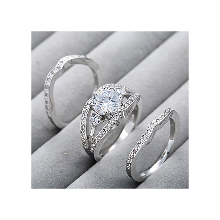원본상품명: (トヨベイ)Toyobuy 優雅 3個セット 925 シルバ リング レディス 指輪 ファッションリング 透明 キュビック ジルコニア 彼女 プレゼント アクセサリ(7)
