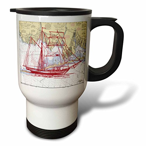 3dRose Print of Great South Bay with Red Ghost Ship Travel Mug, 14 oz, Stainless Steel, White