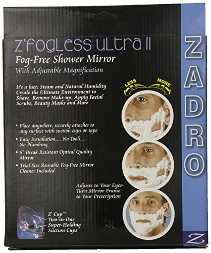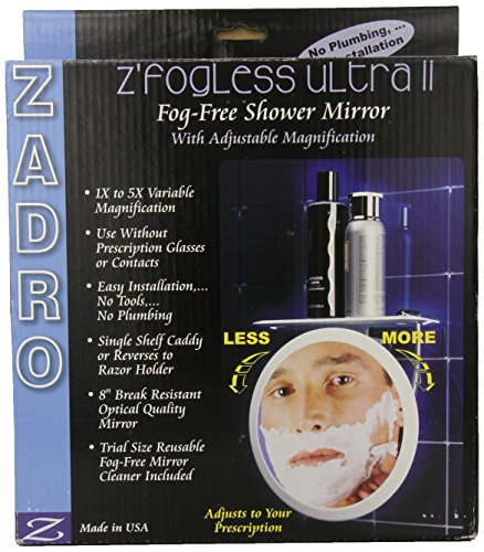 ZADRO 5X Z FOGLESS ULTRA II SHOWER MIRROR AND DUAL TOP TRAY ACCESSORY HOLDER, 9.5-INCH