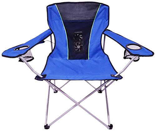 Studio : Universal Products Publisher : Universal Products Binding : Sports Product Description Our super comfortable chair contains a large head, body, and seat with a mesh backing providing big airflow from two AA battery operated fans. The dual fans with an on/off switch keeps you cool with high powered air flow for maximum body cool downs. Features 2 mesh cup holders keeping your beverages within easy reach. Great for camping, sporting events, tail-gate celebrations and family gatherings. Batteries not included. 0