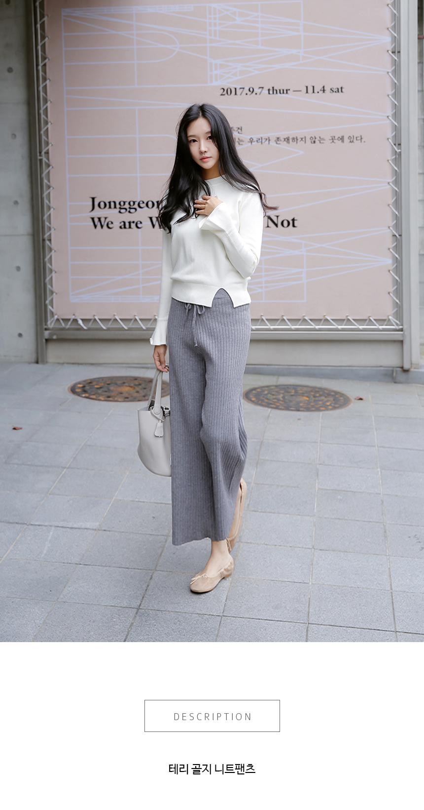 부드러운 골지 짜임의 니트 와이드 팬츠