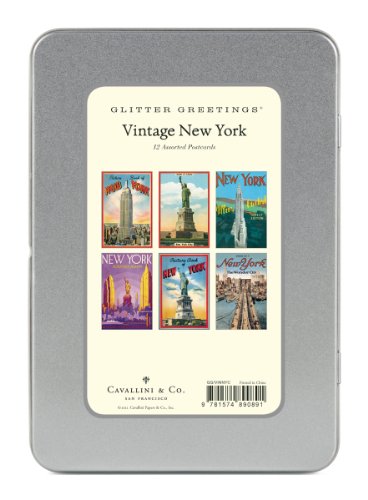 -. Title : Cavallini Vintage New York Glitter Greetings, 12 Assorted Postcards