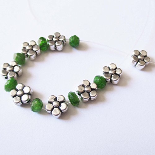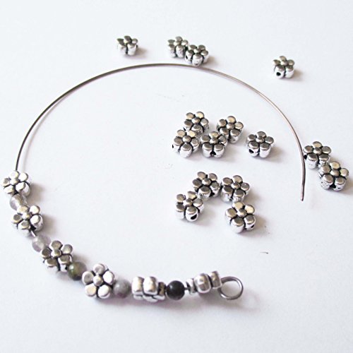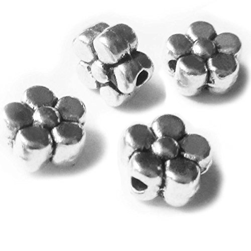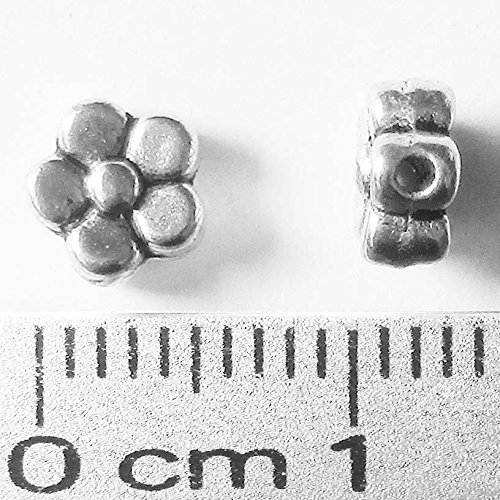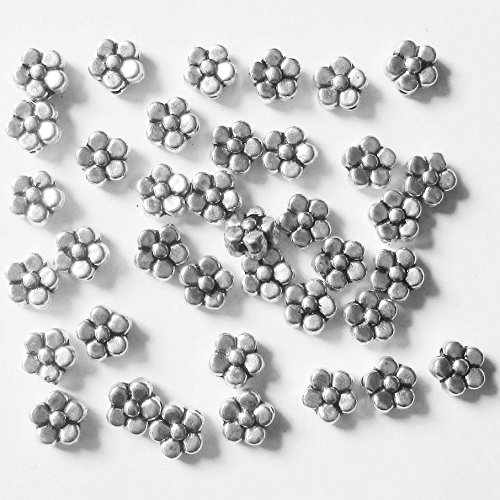 Heather's cf 200 Pieces Silver Tone Five Petal Small Flower Flat Beads Findings Jewelry Making 6mmX3mm