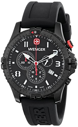 -. Title : Wenger Men's 77053 Squadron Black Ion-Plated Stainless Steel Watch with Black Rubber Band