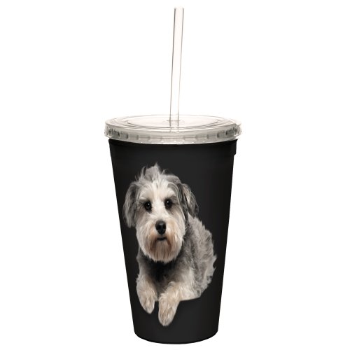 Tree-Free Greetings CC35089 I Heart Miniature Schnauzers Artful Traveler Double-Walled Cool Cup with Reusable Straw, 16-Ounce, Grey Close-Up