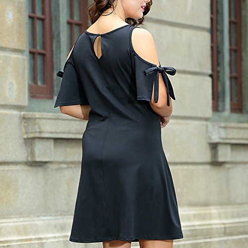 long Tshirt, swing dress, casual wear,Round Neck Cold Shoulder Ruffle Sleeve A-Line Dress