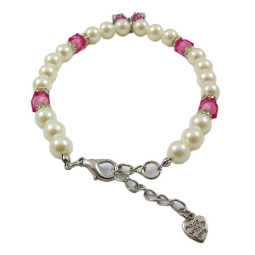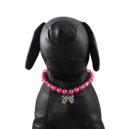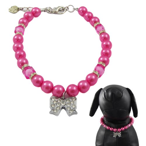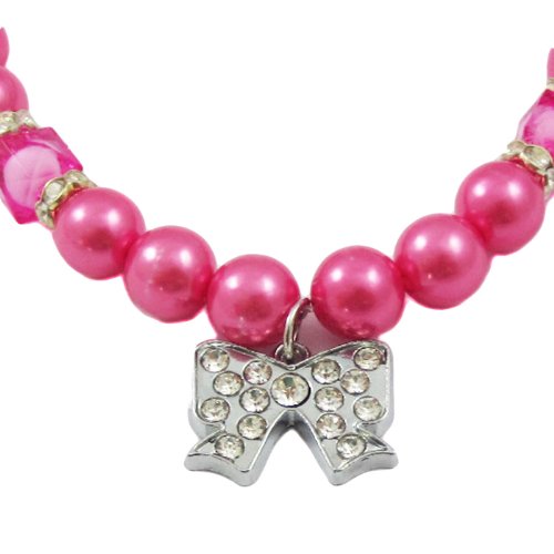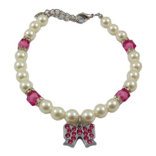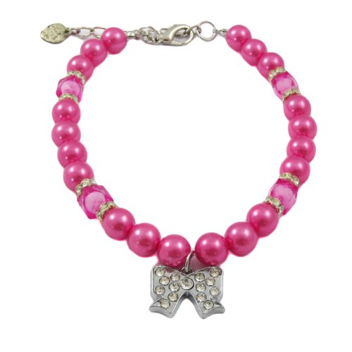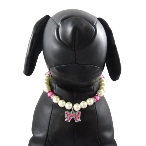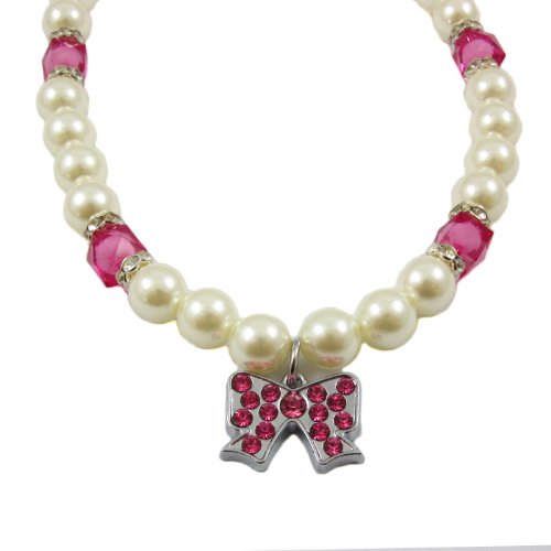 -. Title : Alfie Couture Designer Pet Jewelry - Kon Pearl Necklace with Ribbon Rhinestones Charm for Dogs and Cats