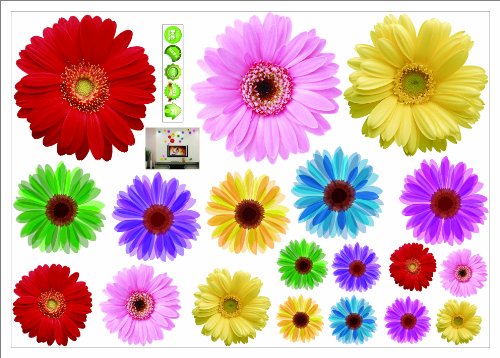 -. Feature : Includes romantic gerbera daisies in different colors / Applies to any smooth surface / Removable and reusable with no sticky residue / Dimension of product sheet: 20Wx27L