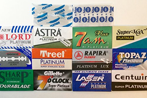 PLATINUM Double Edge Razor Blade Sampler -- 14 of the top quality platinum blades including Feather, Gillette, Astra & Personna