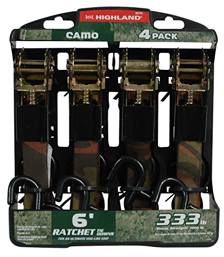 Highland (9211500) 6' Camo Ratchet Tie Down with Hooks - 4 pack