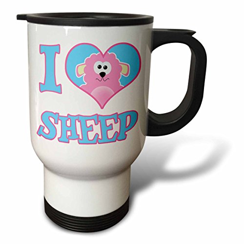 3dRose I Heart Love Sheep Cartoon Travel Mug, 14-Ounce