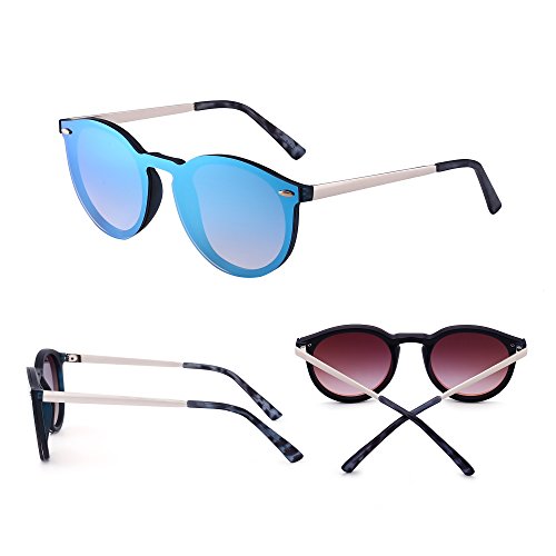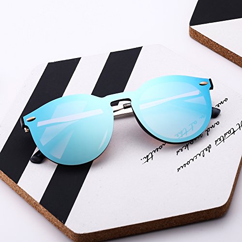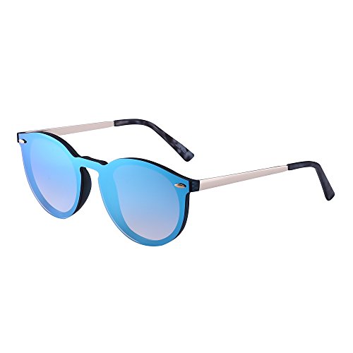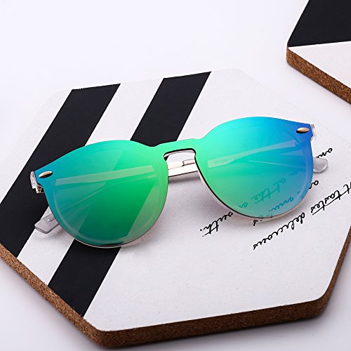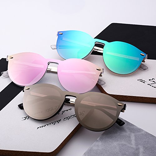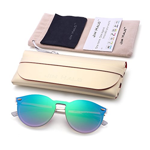 -. Brand : Jim Halo -. Department : womens -. Feature : New Release! Seasonal Hot Item! / Front fully covered with mirrored flat lenses / Nose pads in frame, metal temple with acetate tip / UV400 protection, blocks 100% harmful UVA/UVB Rays / 30 Day Money Back Guarantee: All Jim Halo customers enjoy 30 Day Money Back Guarantee. Customers can return and get refunded in case the purchasing is not satisfactory for any reason -. ProductGroup : Apparel -. ProductTypeName : EYEWEAR -. Title : Mirrored Rimless Sunglasses Reflective One Piece Round Eyeglasses for Women Men