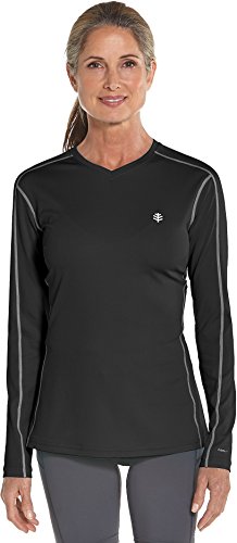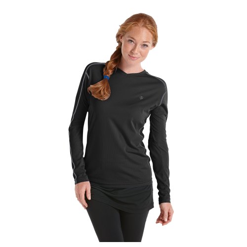We've raised the standards for sun protective fitness gear. New, moisture activated cooling technology is integrated right into our quick dry Women's Long Sleeve Cool Fitness Shirt. Side mesh panels significantly improve air flow. Design details: elongateFeature