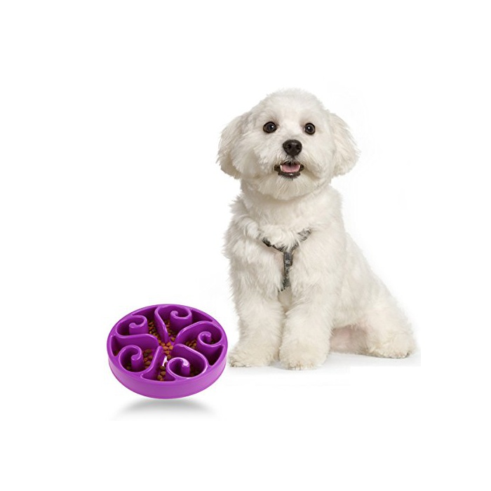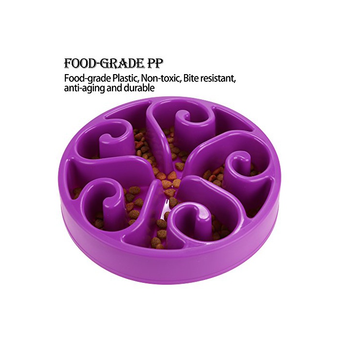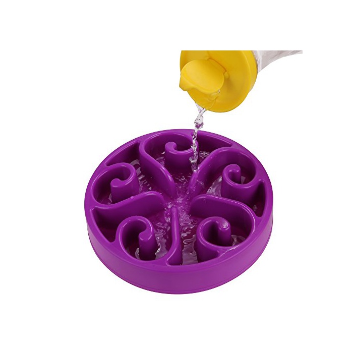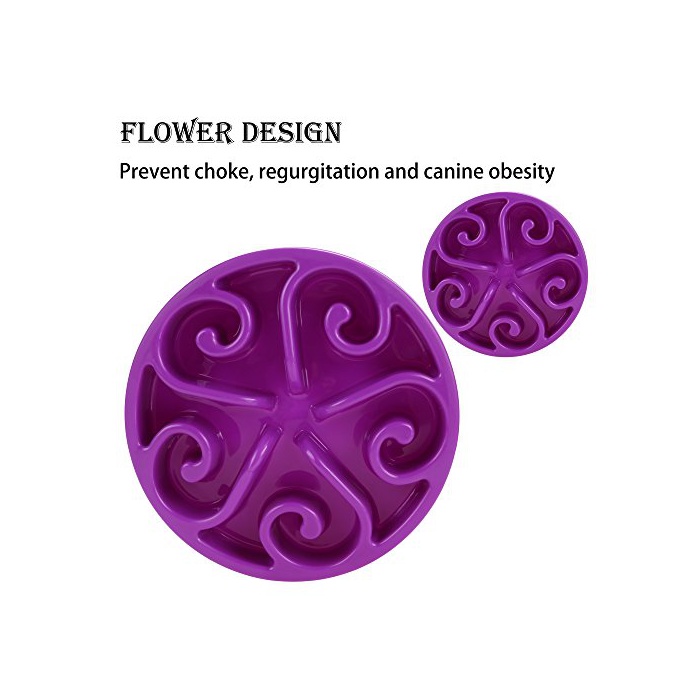 CRAVOG 애완동물 용품 느긋하게 데코보코 식기이 뜰의초목에 물을 줌 해 용품 볼 접시 먹는 것이 지나쳐 빨리먹기 예방국무늬 (퍼플)