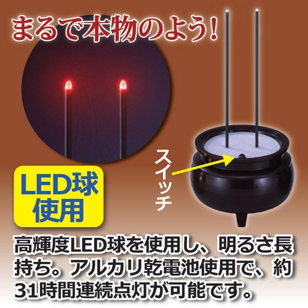 お線香/線香・香炉:ABS、光源:赤色LED、使用電源:単四形乾電池2本