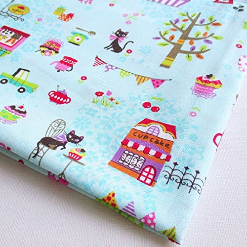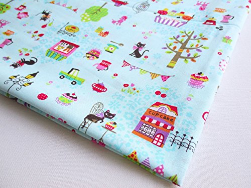 Janpanese Kimono Fabric Lovely Black Cat Kitten Bakery Shop Cherry on Blue 36 by 36-Inch Wide (1 Yard) (JP030)
