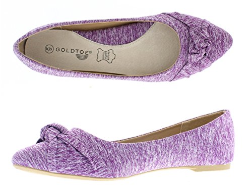 -. Binding : Apparel -. Brand : Gold Toe -. Department : womens -. Feature : Lightweight and soft jersey fabric knit ruched knot ballerina flat for women / Stylish and comfortable pleated pointed toe flat dress shoes with arch support for all day cushioned foot relief / Breathable moisture-wicking genuine leather insole prevents odors / Cute and fashionable slip on flats available in heather black, purple and pink / This women's ballet shoe is availabe in whole sizes only - please see fit guide in product description for shoe size recommendation -. Model : Eve -. ProductGroup : Shoes -. ProductTypeName : SHOES -. Title : Gold Toe Women's Eve Jersey Knit Ruched Knotted Pointed Toe Ballet Flat Dress Shoe with Arch Support