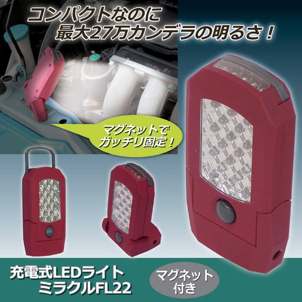 【商品名】充電式LEDライト マグネット/フック付き 連続点灯約5時間 ミラクルFL22