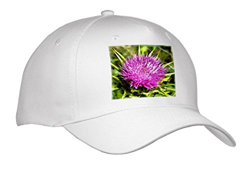 Binding : Apparel Product Description Purple Thistle Wildflower Cap is a custom printed image affixed to a commercial quality 100% preshrunk cotton twill. Whether you are just kicking back or a real sportsman this hat is perfect for any lifestyle. The adult cap features a Velcro closure and the youth cap features a snap closure. Both sizes are adjustable. 0
