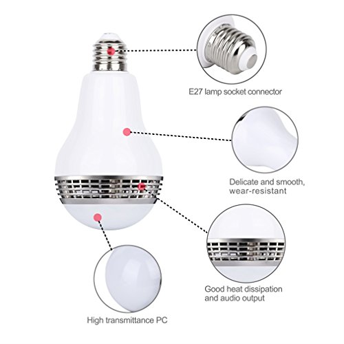 The multicolored smart LED RGB bulb built-in bluetooth speaker,can be controlled via your smart phone or tablet(no app);Enjoy wireless music and colorful lights.
