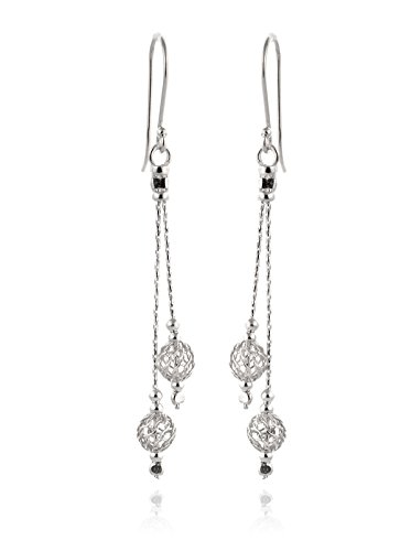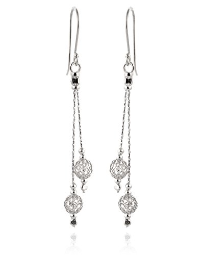 Elegant wire mesh bead dangle earrings. 925 Sterling Silver dangle earrings with wire net mesh ball beads. The 6 mm net beads hang gently on two delicate silver chains. Artisan handmade.