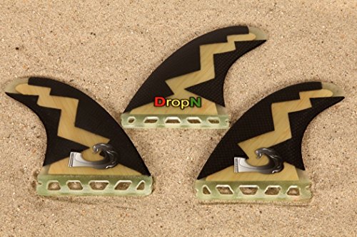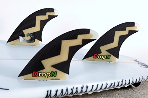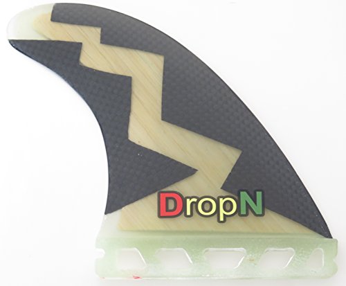 Studio : DropN Publisher : DropN Product Description DropN Shark Teeth surfboard fins Single Tab medium Thruster Set. Fin Size: M Performance OVERVIEW Light weight bamboo and carbon fiber fins for performing fast tight radius turns. Designed for surfers who love speed, to perform aerial maneuvers or ride tight in the pocket. Recommended for high performance shortboards. Performs Best in 3ft. to 5 ft. punchy beach waves or fast hollow reef breaks. DropN Speed is Power! DropN Fins DN5 Size Medium Base = 4.38in Height = 4.58in Thickness = 0.26in Rake = 35.53 degree Surface Area = 34.19in 0