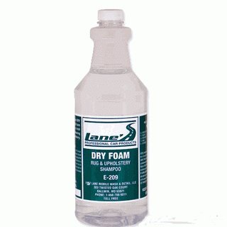 -. Brand : Lane's -. Feature : Not sold in stores. Used by Professional Auto Detailers. / Professional carpet and upholstery shampoo / Concentrated / Pleasant scent -. Label : Lane's Professional Car Products -. Manufacturer : Lane's Professional Car Products -. ManufacturerPartsWarrantyDescription : Parts -. MPN : E-209-32 -. PackageQuantity : 1 -. PartNumber : E-209-32 -. ProductGroup : Automotive Parts and Accessories -. ProductTypeName : AUTO_ACCESSORY -. Publisher : Lane's Professional Car Products -. Size : 32 Ounces -. Studio : Lane's Professional Car Products -. Title : Lane's Car Products Dry Foam Upholstery Cleaner - 32 oz
