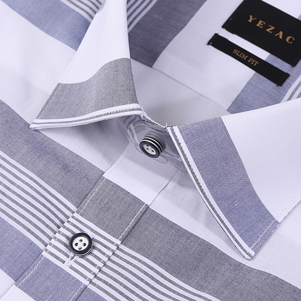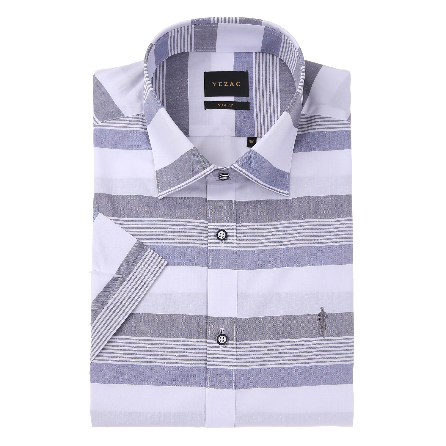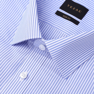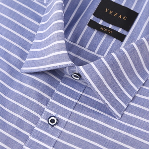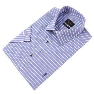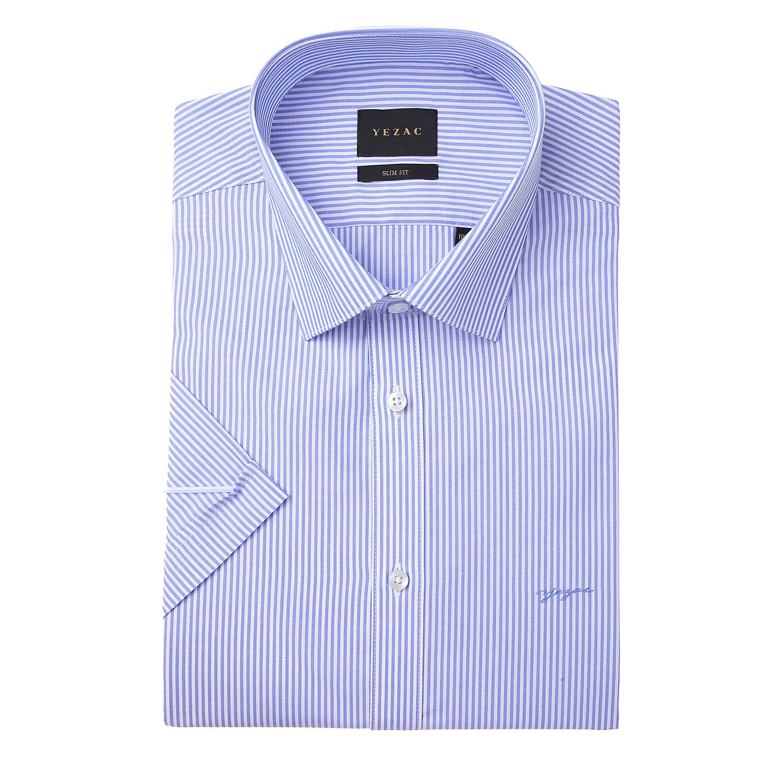 런던스트라이프 블루 슬림핏 반팔셔츠