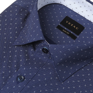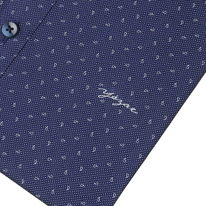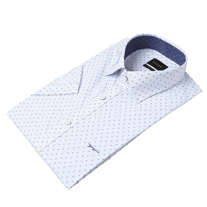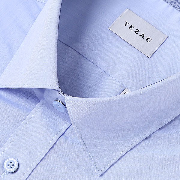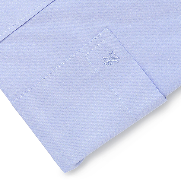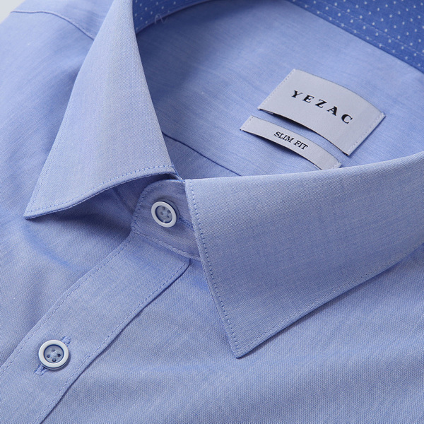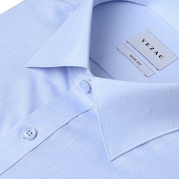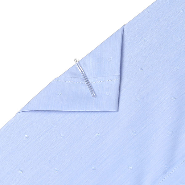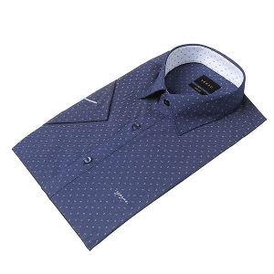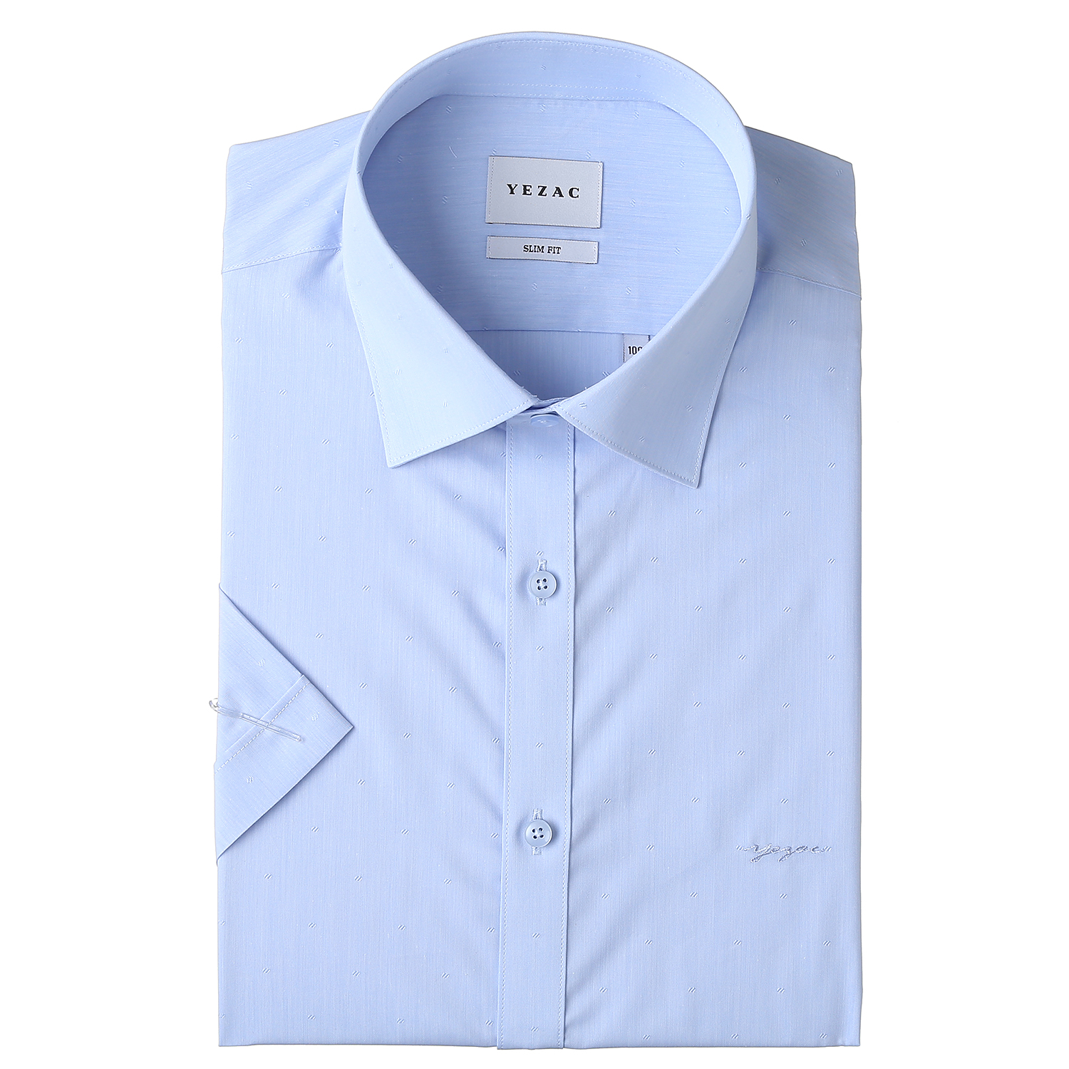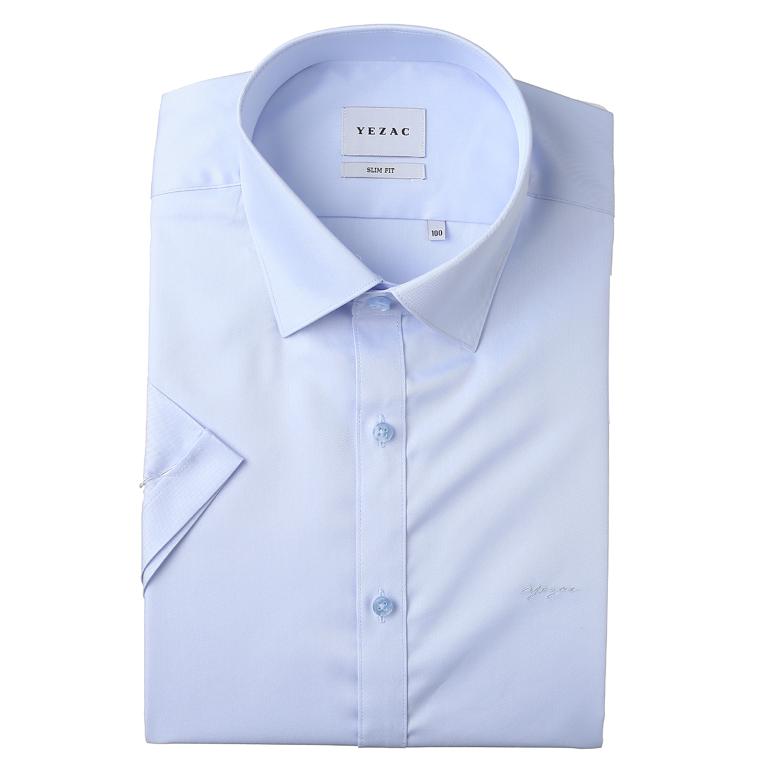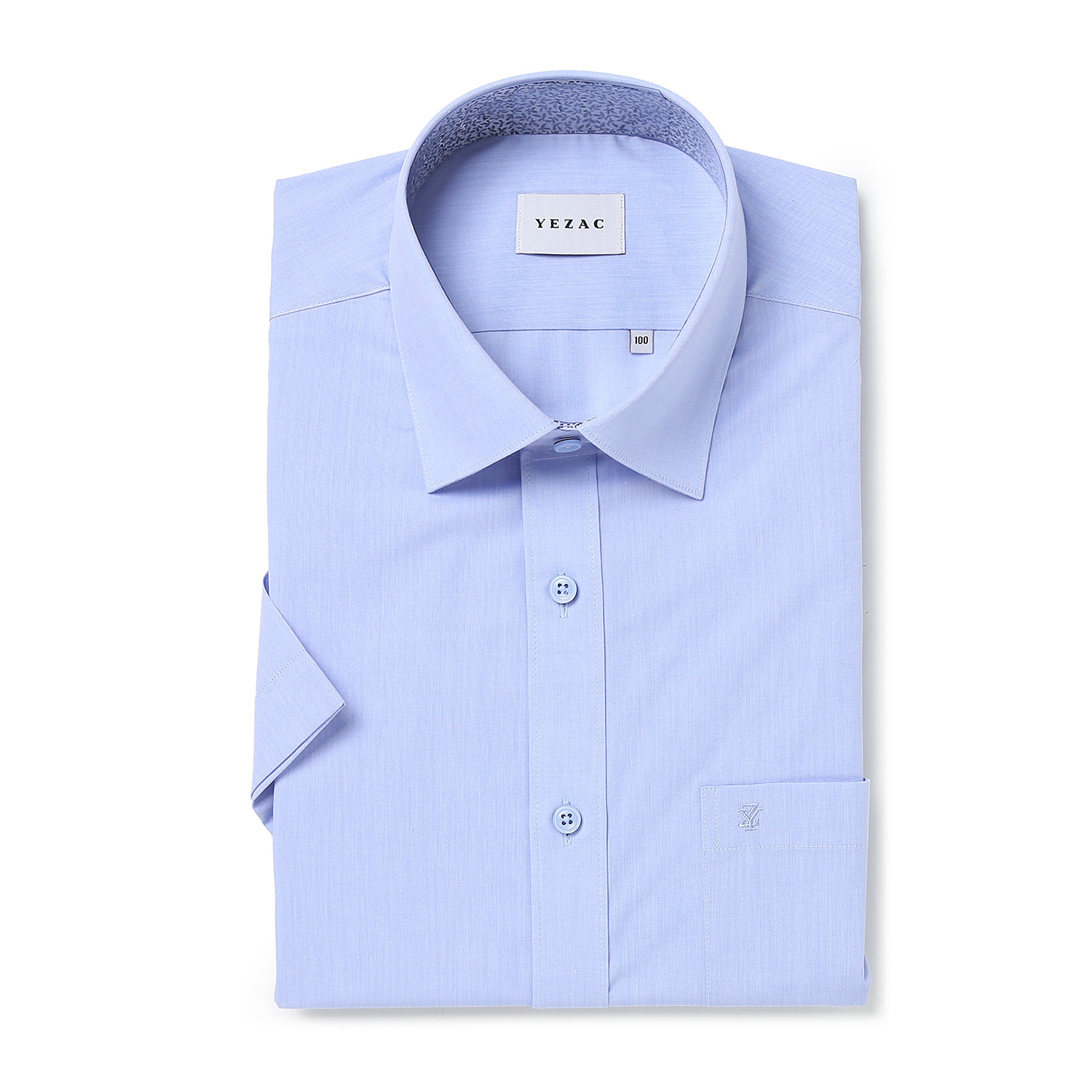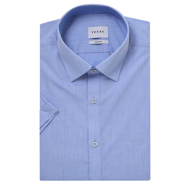 평직 솔리드 블루 슬림핏 반팔셔츠( 카라 스냅단추 )