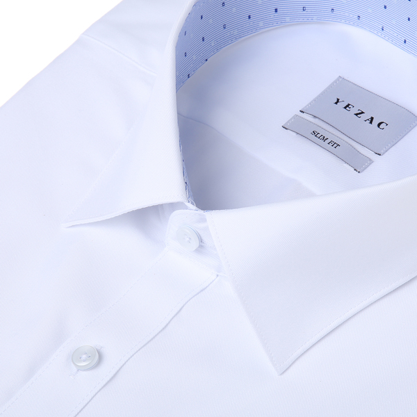트윌 솔리드 화이트 슬림핏 반팔셔츠