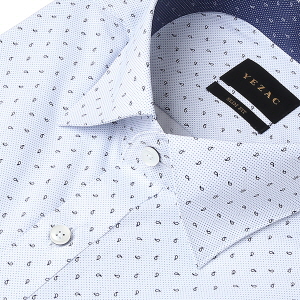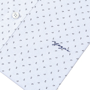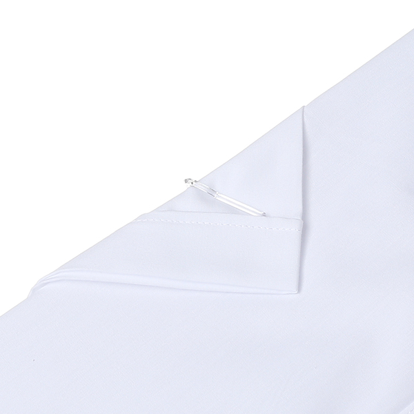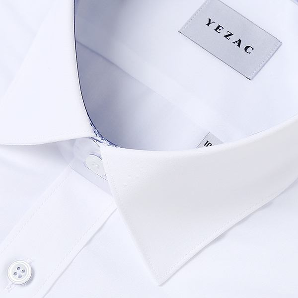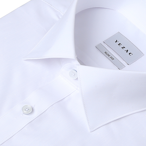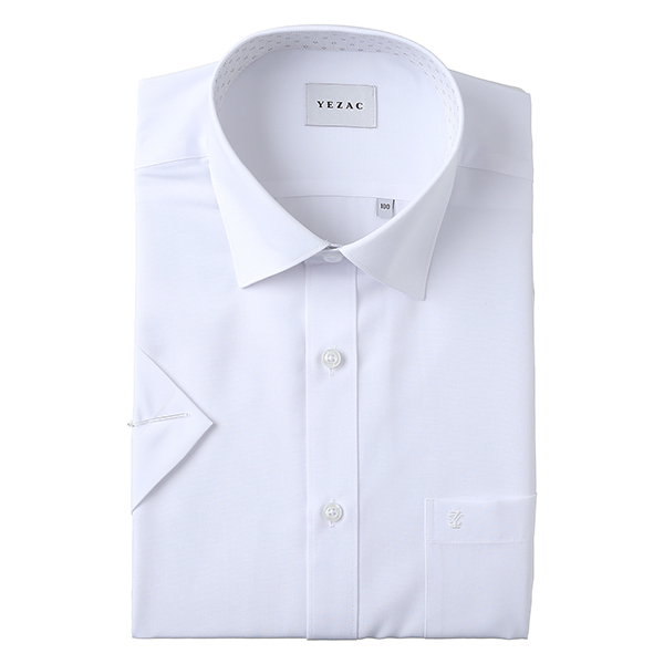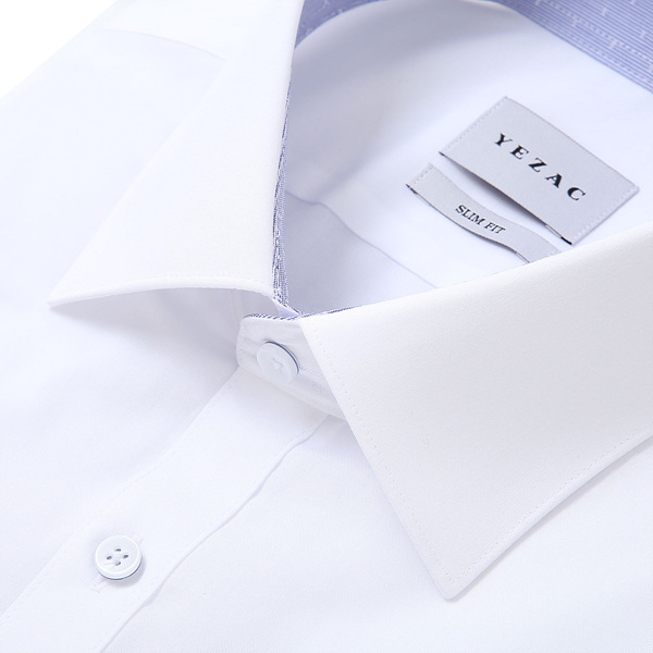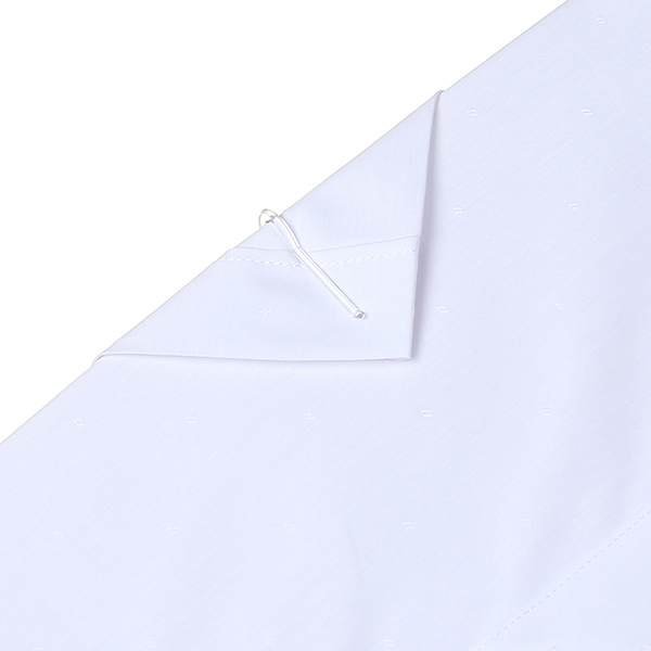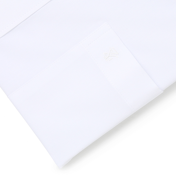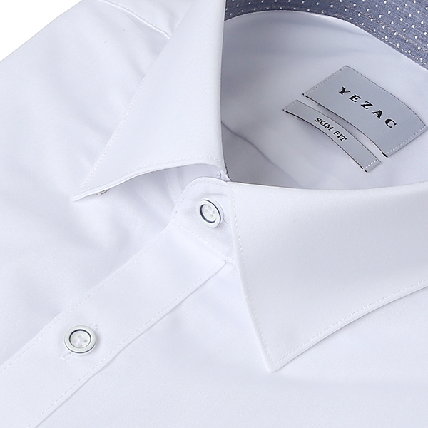 평직 솔리드 화이트 슬림핏 반팔셔츠( 카라 스냅단추 )