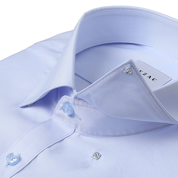 트윌 솔리드 블루 슬림핏반팔셔츠( 카라 스냅단추 )