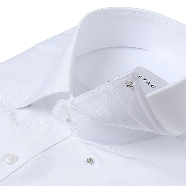 트윌 솔리드 화이트 슬림핏 반팔셔츠 ( 카라 스냅단추 )
