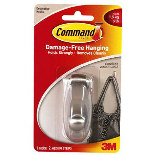Command Timeless Hook, Medium, Brushed Nickel, 1-Hook (17061BN-ES)