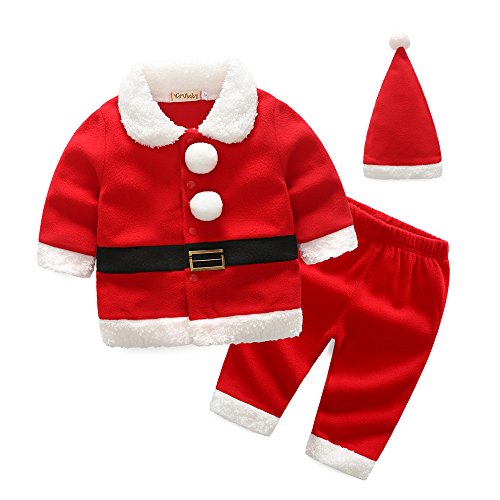 -. Title : (チェリーレッド)CherryRed クリスマス サンタ衣装 ベビー服 男女兼用 フリース フランネル トップス+パンツ+帽子