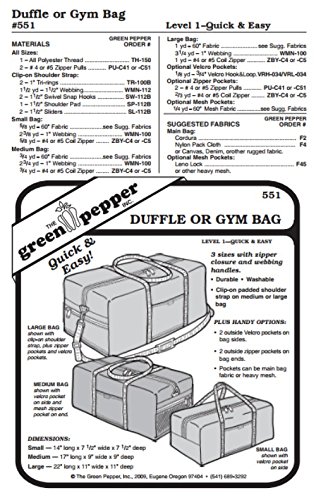 -. Feature : Sewing Pattern. Duffle or Gym Bag #551 / Multi-sized Pattern Level 1