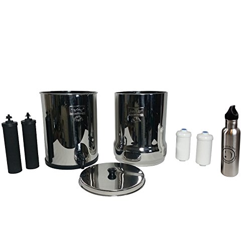 Royal Berkey Water Filter System RB4X2 with 2 Berkey Black Filters and 2 Fluoride Filters Bundled with One Stainless Steel Water Bottle
