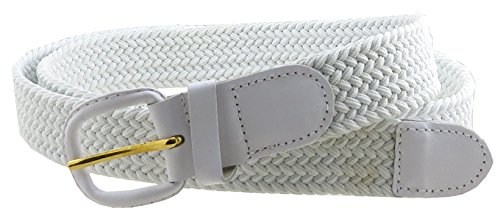 -. Binding : Apparel -. Brand : BC Belts -. Department : mens -. Feature : Belt Measures 1 1/4" Wide / Buckle and Tip Made of Genuine Leather / Total Belt Length: S-38", M-41", L-44", XL-"47 / Great for Men and Women / Adjustable Fit For Comfort -. ProductGroup : Apparel -. ProductTypeName : ACCESSORY -. Title : Braided Elastic Woven Stretch Belt Solid Color Leather Tipped Buckle and Tip