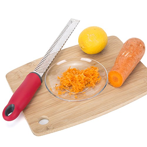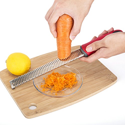 Easy & Safe to Use: The non-slip soft handle ensures a good control while zesting & grating, protecting fingers from the sharp blades.Sturdy Stainless Steel won't rust. Razor Sharp Soft Rubber footing provides stability & Dishwasher Safe.