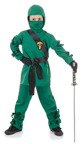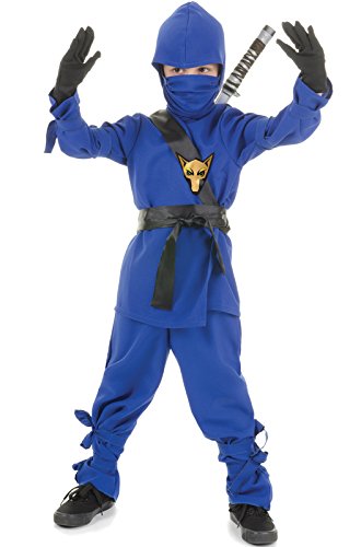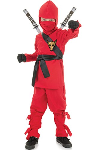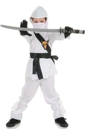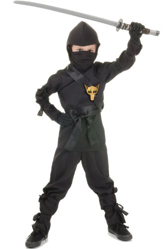 This child black ninja costume includes the shirt, pants, hood, mask, sash and belt.