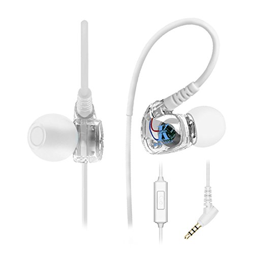 Wired Sport Workout Headphones Sweatproof Over Ear Earbuds With Mic and Remote Noise Isolating Running Jogging Earphones for iPhone iPod iPad Android Cell Phones (Clear)