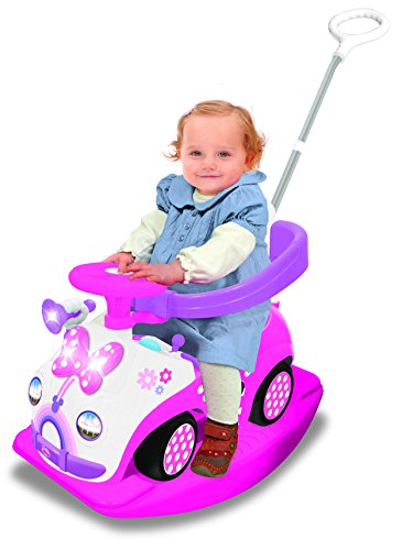 -. Binding : Toy -. Brand : Kiddieland Toys Limited -. EAN : 0661148492395 -. Feature : Hear Minnie play her favorite song with flashing light-up bow! / Press colorful piano keys to play and hear lovely music. Press key and shift gears for revving engine sound / Honk horn or press little horn on helping hand for lively tunes / Removable rocking base for rocking or riding fun! / Transforms from rocker to push-along to ride-on! With rigid support around seat for extra comfort & safety -. IsAdultProduct : 0 -. Label : Flat River Group -. Manufacturer : Flat River Group -. Model : 049239 -. MPN : 049239 -. PackageQuantity : 1 -. PartNumber : 049239 -. ProductGroup : Toy -. ProductTypeName : TOYS_AND_GAMES -. Publisher : Flat River Group -. ReleaseDate : 2016-02-15 -. SKU : ds-tru-D5DD191D -. Studio : Flat River Group -. Title : Kiddieland Disney Minnie Mouse 4 in 1 Activity Ride-On -. UPC : 661148492395 -. Warranty : No Warranty