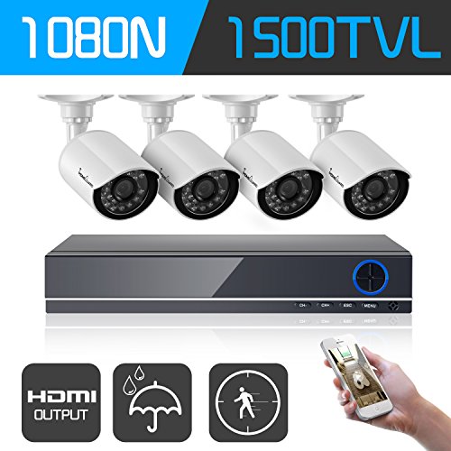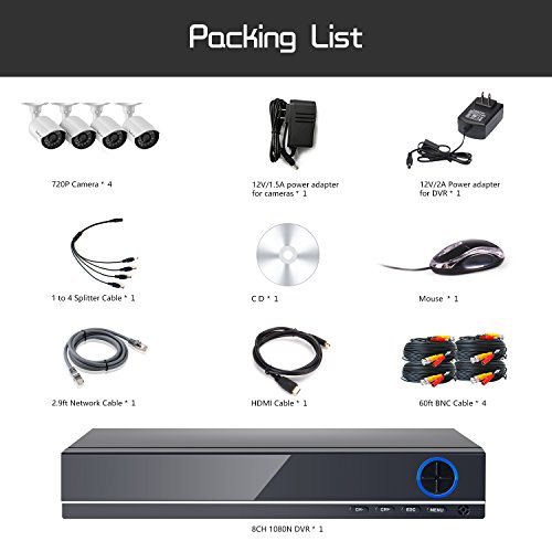 -. Feature : This is 8CH 1080N Security Camera System with 4PCS Outdoor 720P HD 1500TVL Weatherproof CCTV Cameras, not include Hard Drive / Email Notification & Mobile Push Alerts when Motion Detection,Free VIEW Apps for Live View and Playback on Smartphone / Easy installation, Weatherproof CCTV Cameras is 720P/1500 TVL Resolution and Support 20M IR for Night Vision / This Surveillance Camera System Support USB port Back up,gives you the easiest option of backing up and transferring your video footage to a USB flash drive / FCC Certified with UL Compliant Power Adapter, 3 Years Warranty and Life Time Tech Support!
