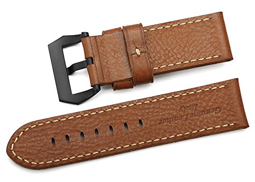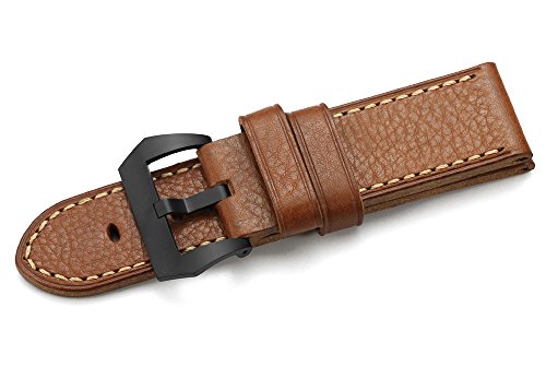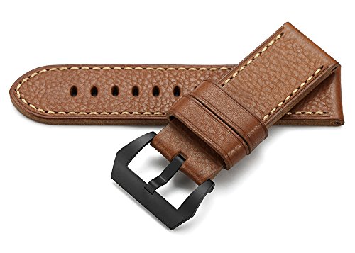 - Feature : Made of top quality genuine calf leather / Width: 26/26mm, fit 26mm watch lug and comes with a 26mm prev tang buckle, screw in style / Length: 130/75mm, long part with hole is 130mm and short part is 75mm, can fit 6.8-8.5 inch wrist. / Thickness: About 4.5mm, thick and soft. / Designed to fit Panerai Radiomir, 1950 watches, still a good choice for other big watches with 24mm watch lug.