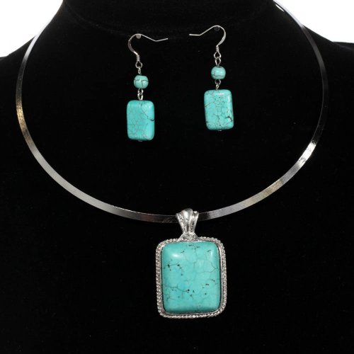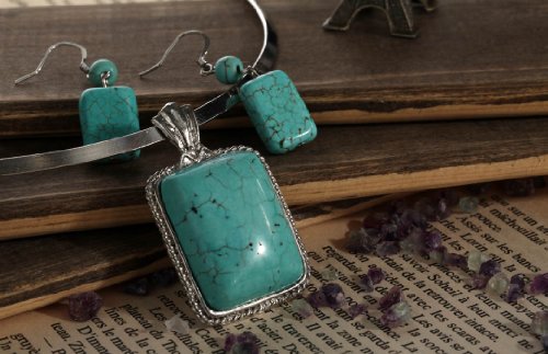 - Title : Yazilind Jewelry Vintage Rimous Turquoise Rectangle Pendant Collar Necklace Earrings Set Alloy Ethnic Gift Idea